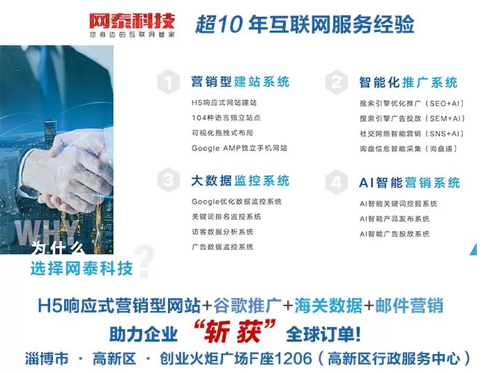 外贸网站推广-淄博网泰科技是一家专业海外推广公司,海外营销公司。凭借丰富海外营销经验,先进外贸推广技术、强大海外seo优化团队和海外推广服务.